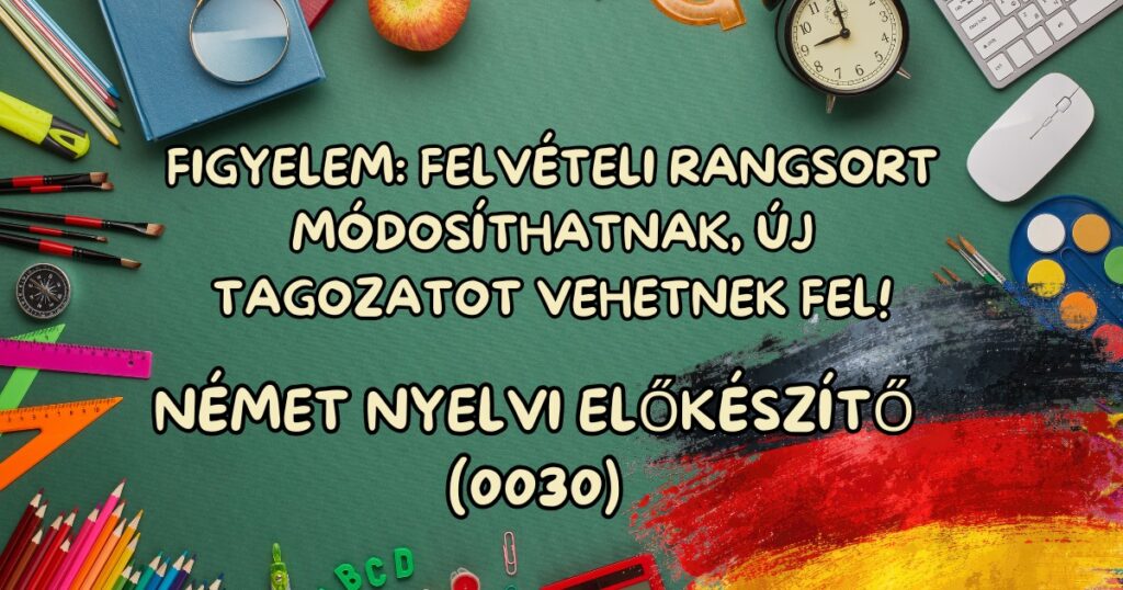 Miért érdemes a német nyelvi előkészítő tagozatot (kód: 0030) választani? Annak érdekében, hogy gyermekük nagyobb eséllyel nyerjen felvételt intézményünkbe, javasoljuk a német nyelvi előkészítő tagozat megjelölését is a módosító időszakban.